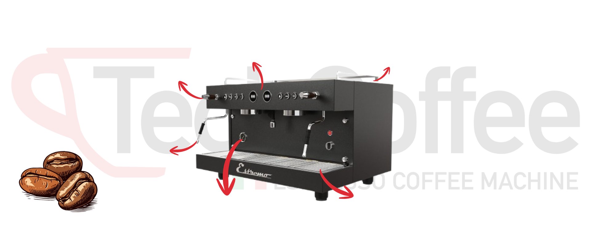 Una máquina espresso profesional de 2 grupos con bomba rotativa y doble caldera, diseñada para ofrecer espressos consistentes y un rendimiento superior en cualquier entorno exigente.